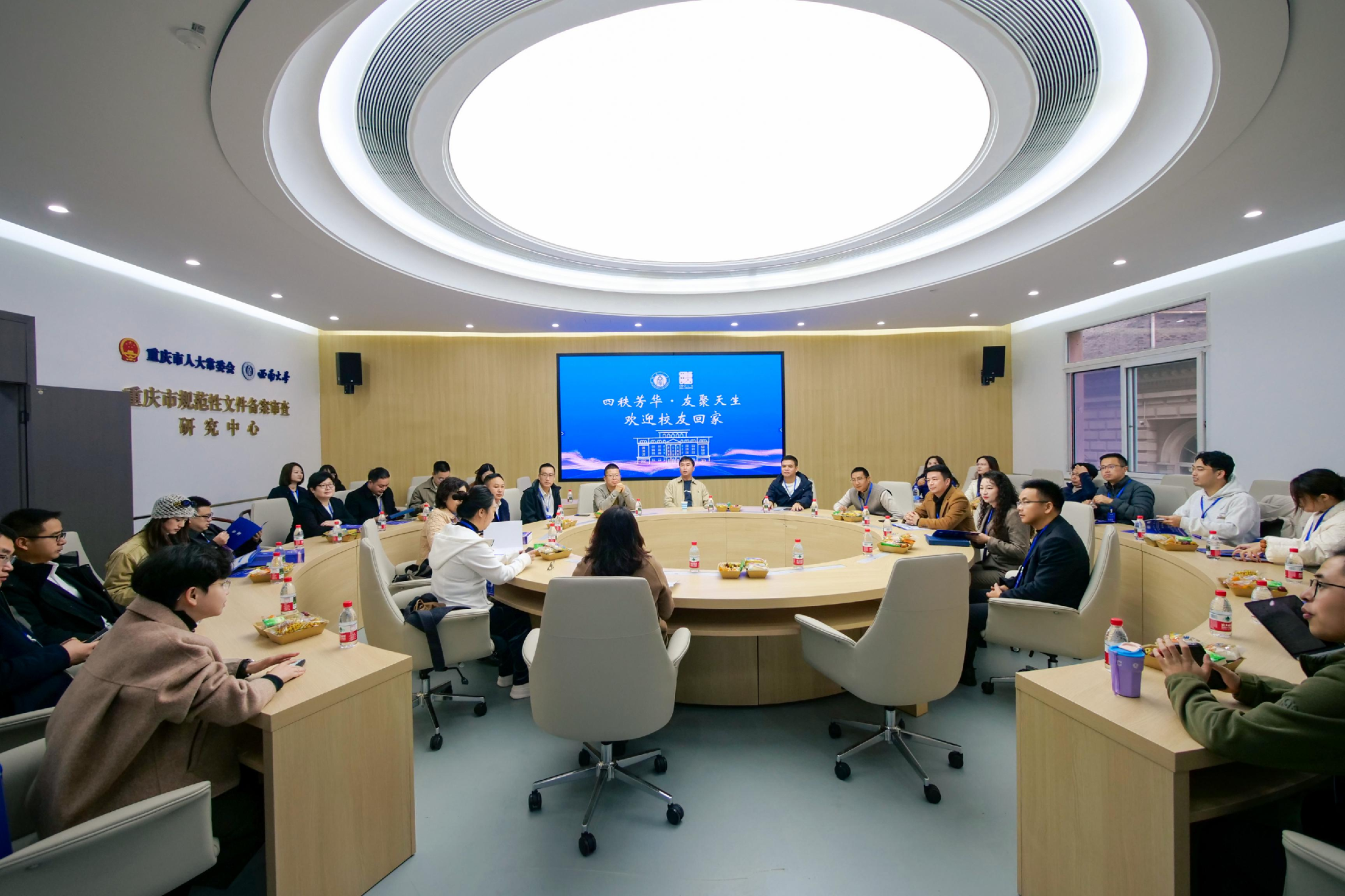 秋末冬初,情暖天生。11月22日,以“四秩芳华·友聚天生”为主题的西南大学法学院校友返校日活动圆满举行。来自全国各地共50余名法学院校友重返母校,共叙同窗情谊,共话学院发展,并以法学院校友会筹备会暨院庆筹备工作座谈会的成功举办,正式拉开了法学学科创建四十周年暨法学院建院二十周年纪念活动的序幕。