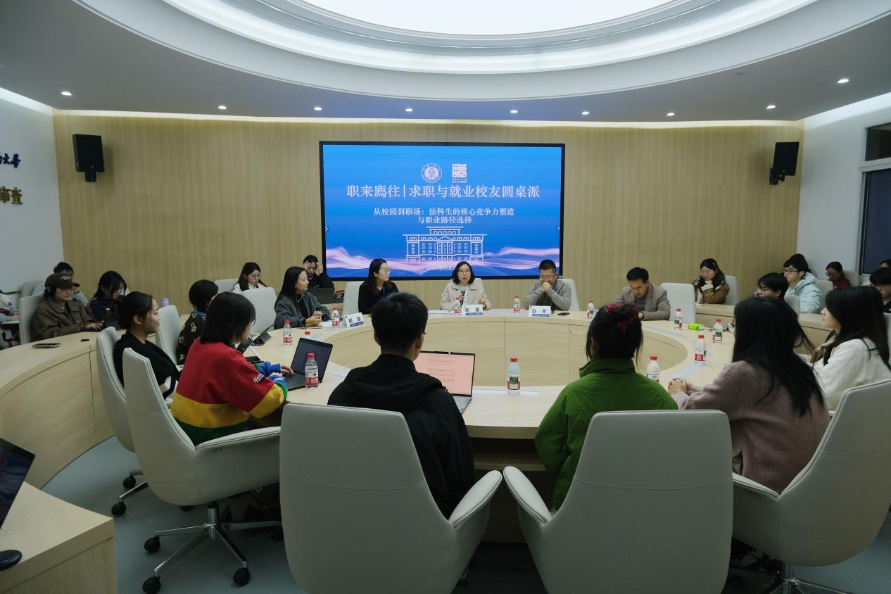 为了搭建一个学生与业界精英、杰出校友深度对话的交流平台,助力法学学子的职业规划与未来发展,11月21日,法学院在118教室举行了“职来廌往|求职与就业校友圆桌派”校友圆桌派活动。活动特邀2005级校友、上海汉盛苏州律师事务所高级合伙人赵彬,2007级校友、天津澍泽律师事务所合伙人张智慧,2009级校友、上海锦天城(郑州)律师事务所合伙人禄海占来到本校与同学们围坐畅谈。活动由学院党委副书记张梅主持,学院本科生辅导员胡婷及学院高年级研究生、本科生共40余人参与会谈。