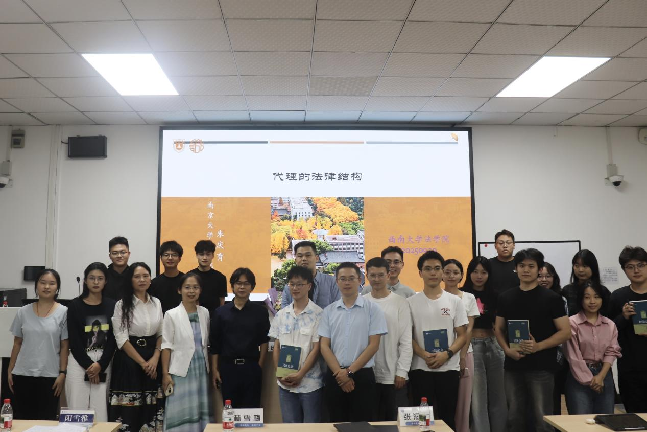 2025年9月29日,西南大学法学院举办含弘法学论坛第59讲,特邀南京大学法学院教授、博士生导师朱庆育主讲“代理的法律结构”。论坛由西南大学法学院阳雪雅副教授主持,法学院林雪梅副教授和张海鹏副教授担任与谈人,90余名师生参与本次论坛。