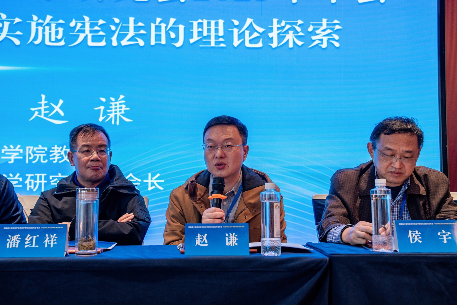 会议开幕式由湖北省法学会宪法学研究会副会长兼秘书长、中南财经政法大学法学院秦小建教授主持,湖北省法学会党组成员、秘书长赵俊,湖北民族大学校党委常委、纪委书记、监察专员张宏磊,湖北省恩施州人大常委会党组成员、副主任侯斌,中国法学会宪法学研究会副会长、湖北省法学会宪法学研究会会长、中南财经政法大学法学院刘茂林教授,重庆市法学会宪法学研究会会长、西南政法大学纪检监察学院张震教授相继致辞。大会主题发言围绕“全面贯彻实施宪法的理论探索”展开,共设有“分论坛一:宪法实施与备案审查”“分论坛二:宪法实施与地方治理”“分论坛三:宪法实施与权力监督”“分论坛四:宪法实施与基本权利”等四个分论坛。我院宪法学与行政法学学科师生赵谦、马涛、孙悦、赵一平应邀出席本次会议。
