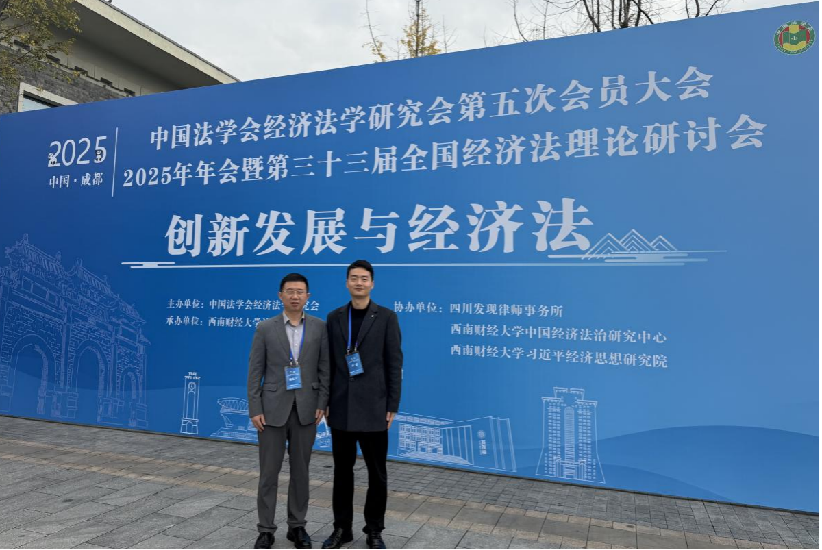 2025年11月15日至16日,中国法学会经济法学研究会第五次会员大会、2025年年会暨第三十三届全国经济法理论研讨会在成都举办。会议以“创新发展与经济法”为主题,由中国法学会经济法学研究会主办,西南财经大学承办。中国法学会党组成员、副会长王振江,四川省高级人民法院党组书记、院长王树江等领导嘉宾出席开幕式。西南财经大学法学院院长鲁篱主持开幕式。大会选举北京大学法学院教授张守文为中国法学会经济法学研究会第五届理事会会长。来自北京大学、清华大学、中国人民大学、西南大学等高校的300余位专家学者参与此次会议。学院杨复卫教授、向超副教授应邀参会,杨复卫教授当选为理事会理事。