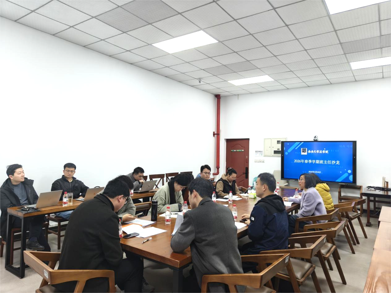 为全面落实立德树人根本任务,进一步凝聚育人合力、深化学风建设实效,3月20日下午,法学院2026年春季学期班主任工作会在38教116室举行。学院本科生全体班主任及辅导员参加会议,会议由学院党委副书记张梅主持。
