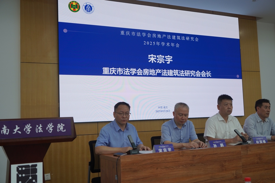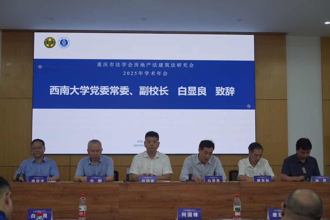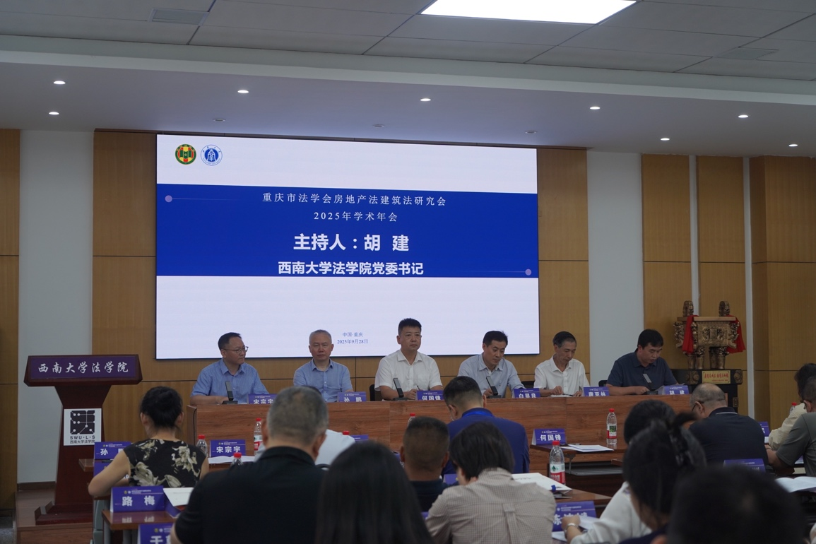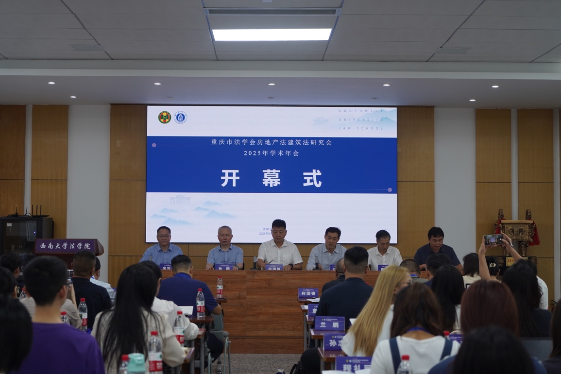 2025年9月28日,重庆市法学会房地产法建筑法研究会2025年年会暨“高质量发展背景下房地产法建筑法的时代革新”研讨会在西南大学法学院顺利举行。此次年会由重庆市法学会房地产法建筑法研究会主办,西南大学法学院、西南大学乡村振兴生态保护法治研究团队承办,重庆立源律师事务所、重庆大学建筑与房地产法研究中心协办。来自重庆大学、西南大学、西南政法大学、广东外语外贸大学、重庆邮电大学、重庆工商大学等高校、法院以及律师事务所等30余家实务部门的专家学者、实务工作者、在校学生共100余人参加会议。